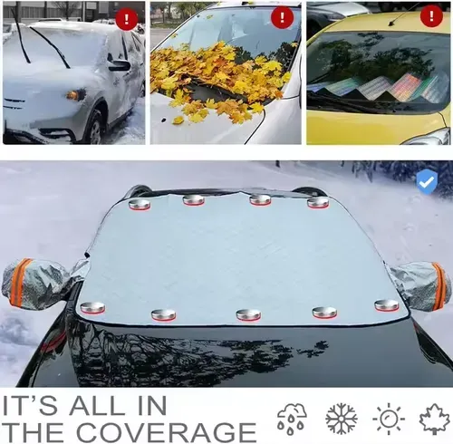 - ⛄Easy To Store: This car windshield cover will not take up valuable space in the car. It can be folded into a small part of its size and can be easily stored in a suitcase or glove box.