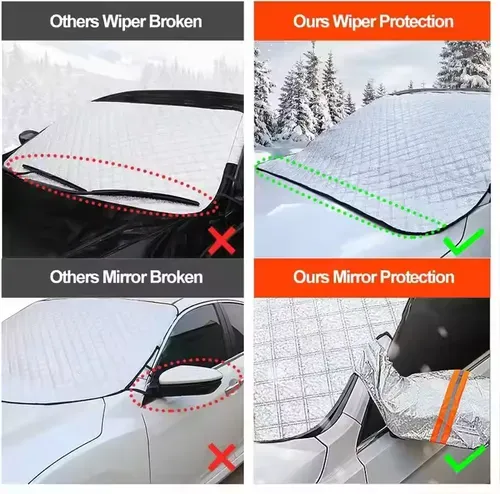 - ⛄High-quality Material: Made of high-quality aluminum film and cotton. The thicker and more durable design makes the windshield snow cover more suitable for your car, and gives your car good protection in windy, rainy and snowy days.