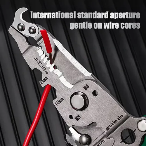 All functions in one! ! Our newly upgraded multi-function wire strippers can greatly improve your work efficiency.Precise Wire Stripping Hole: Precision stripping hole design, neat cutting, no damage to the wire core, say goodbye to messy and damaged wires. Suitable for stripping 8/10/12/14/16 AWG solid and stranded wires, easy to separate, convenient for bending, shaping and pulling wires.