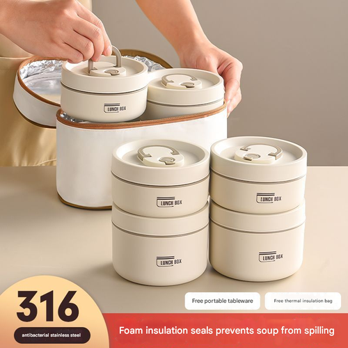 316 Stainless Steel Insulated Lunch Box with Portable Soup Bowl Office Workers' Insulated Bucket Lid for Microwave Oven Use