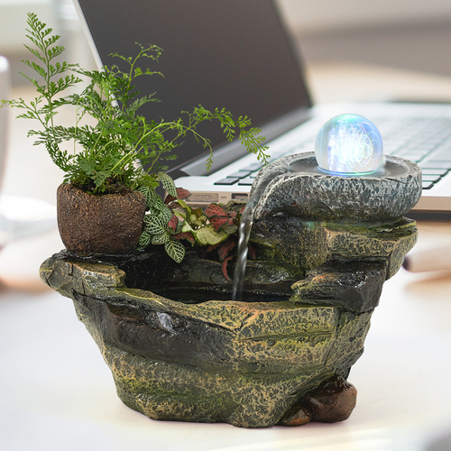 Artificial rockery, flowing water fountain, living room counter, office desktop water wheel, light luxury water feature decoration.