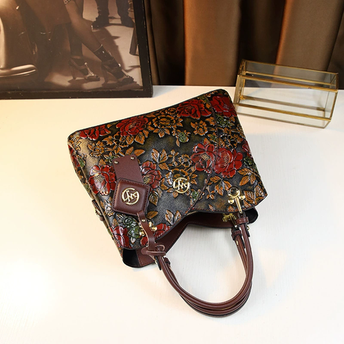 Vintage Flower Pattern Handbag, Luxury PU Leather Tote Bag, Fashion Crossbody Bag for Women