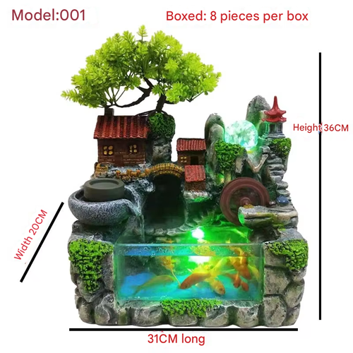 Wholesale Table Desk Office Home Wall Decoration Indoor Tabletop Decor Rockery Fish Jar Resin Water Fountain