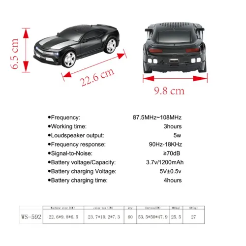 2025New Designs Promotional Gift WS-592 Car Shape Portable Home Fm Radio Blue Tooth Wireless Speaker