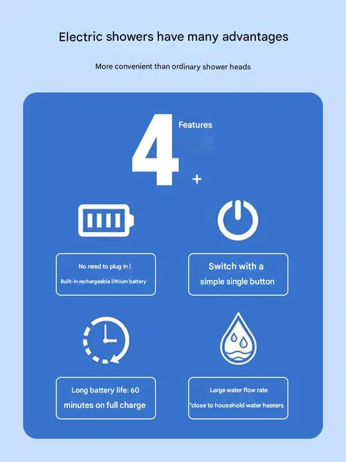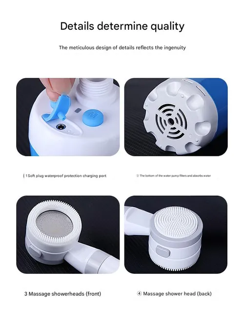 2m long Portable outdoor shower, camping shower pump, adjustable flow, electric shower with outdoor camping hose