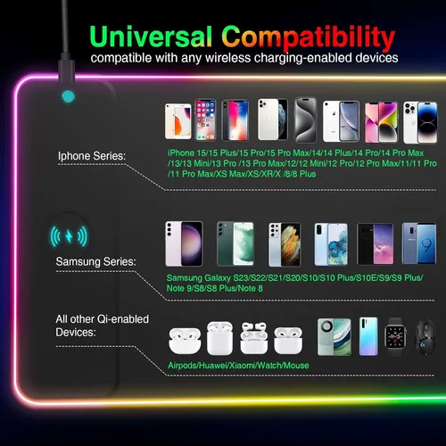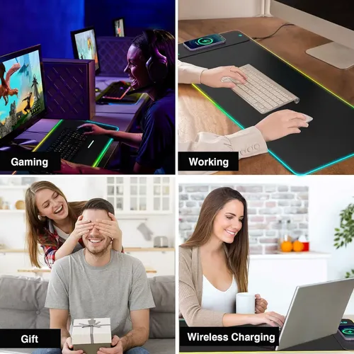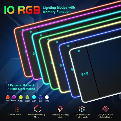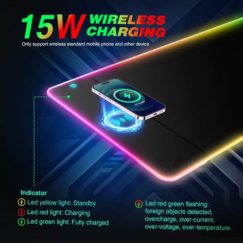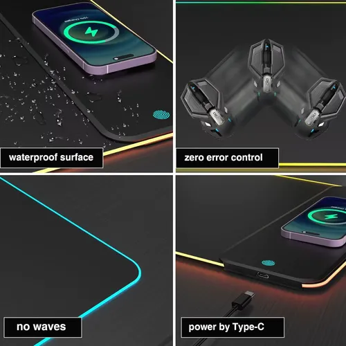 800*300*4mm Wireless Charging RGB Gaming Mouse Pad 15W Led Extra Large Non-Slip Rubber Base Computer Keyboard Desk Mat PC Laptop