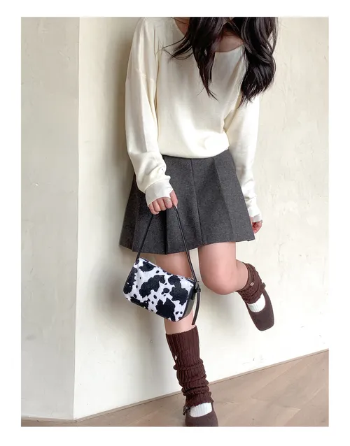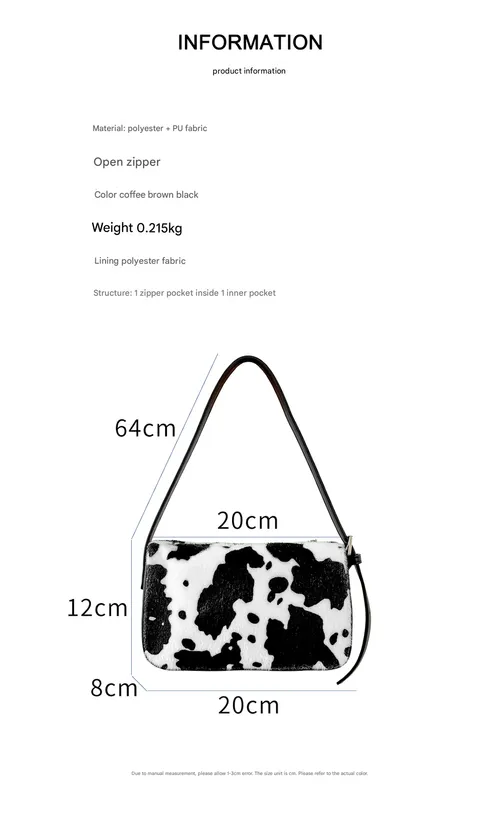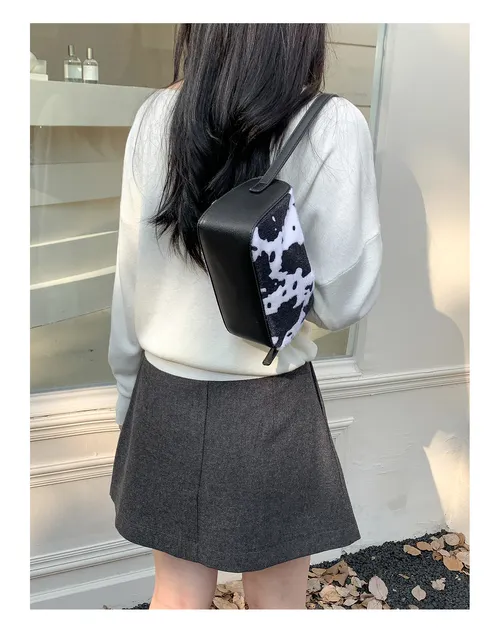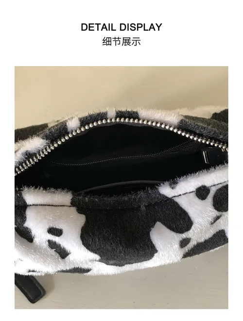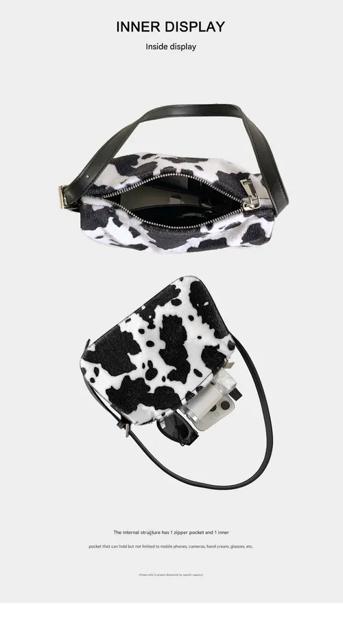 Cow Print Fuzzy Underarm Bag 2025 - Plush Square Mini Purse with Trendy Patchwork Design