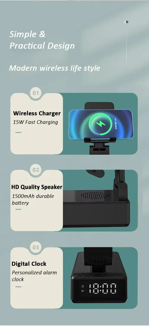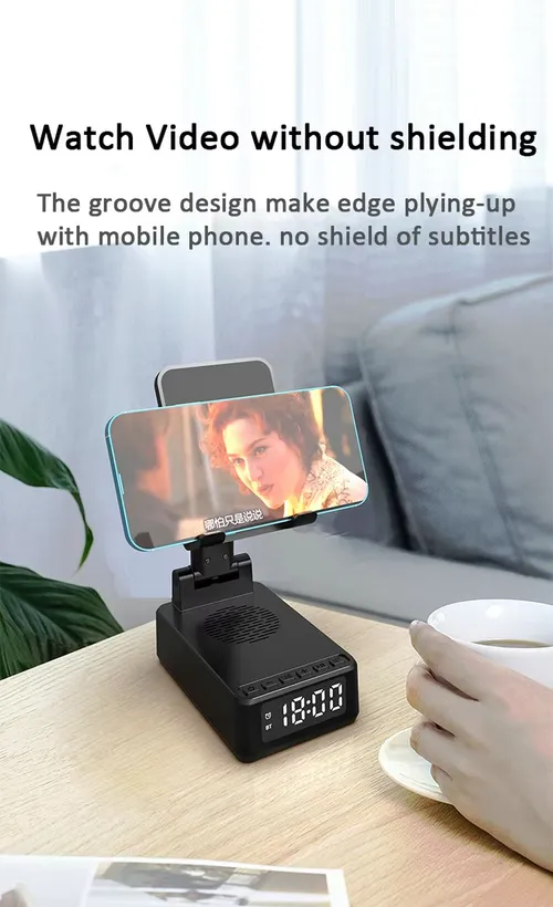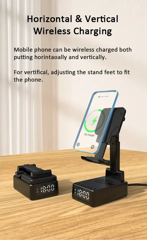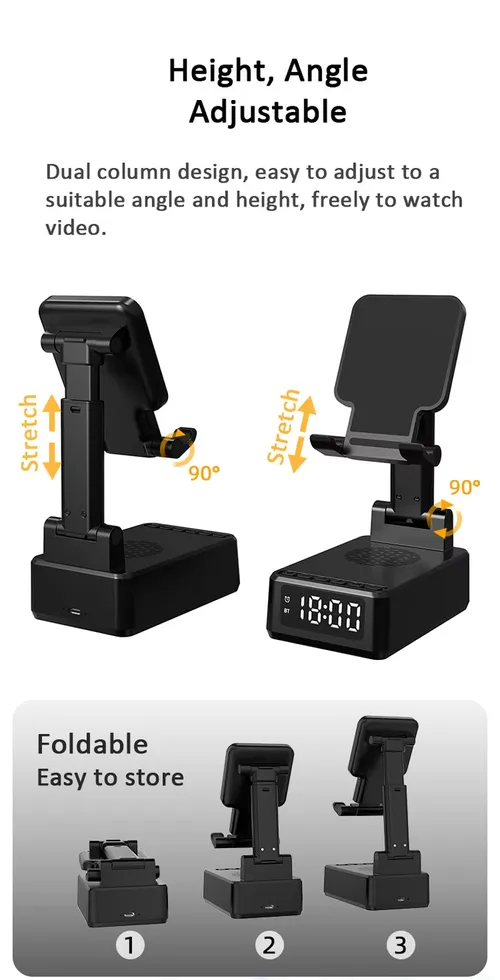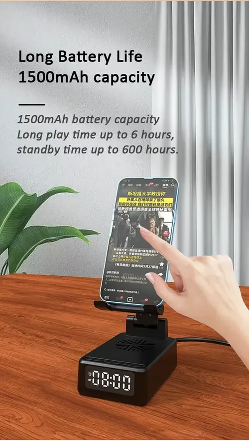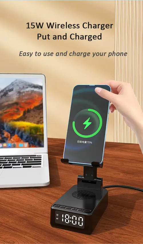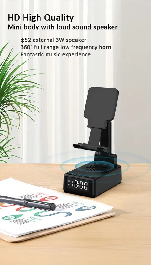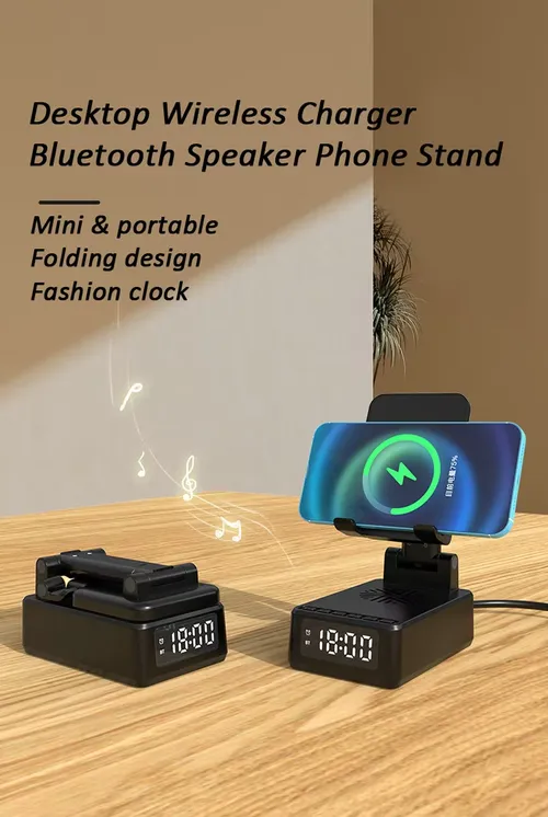 New Wireless Charger BT Clock Speaker Mobile Phone Stand Multi-in-one Desktop Folding Stand BT Small Audio Box