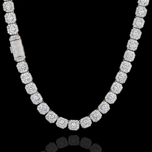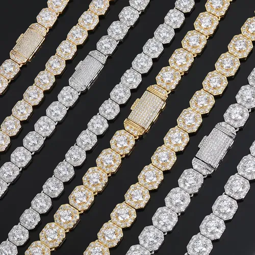 Nuoya 10mm Gold Plated Clustered Tennis Chain Necklace Iced Out Baguette Cubic Zircon Choker Necklaces