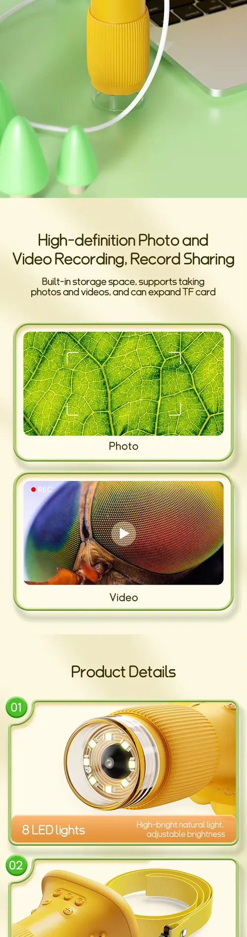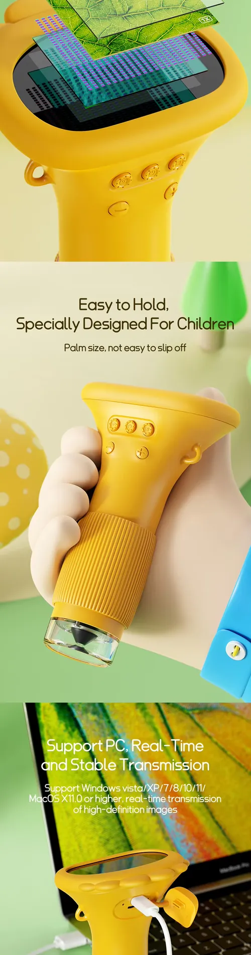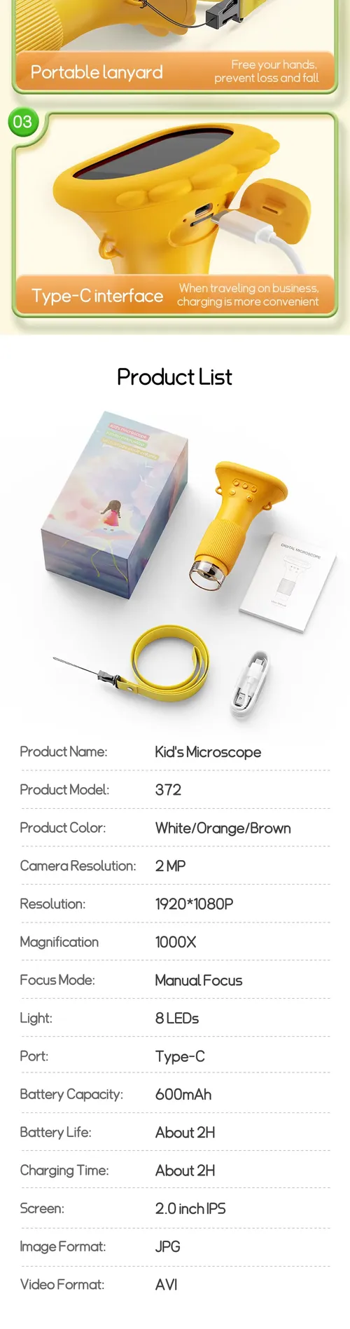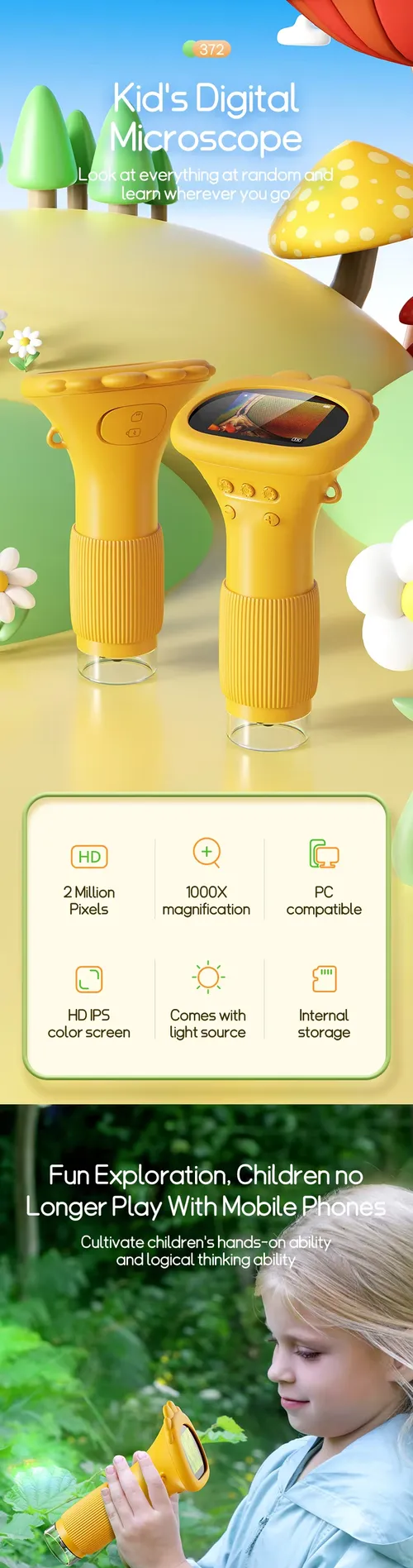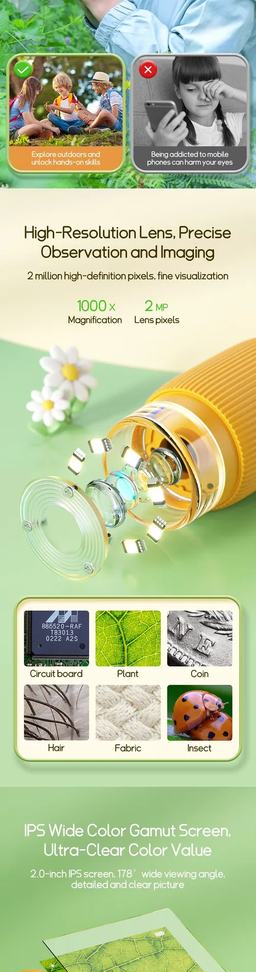 ODM 2-Inch IPS 1000X Handheld Mini Electronic Microscope LED Fun Science Kit for Kids Portable Real Microscope Toys Gifts