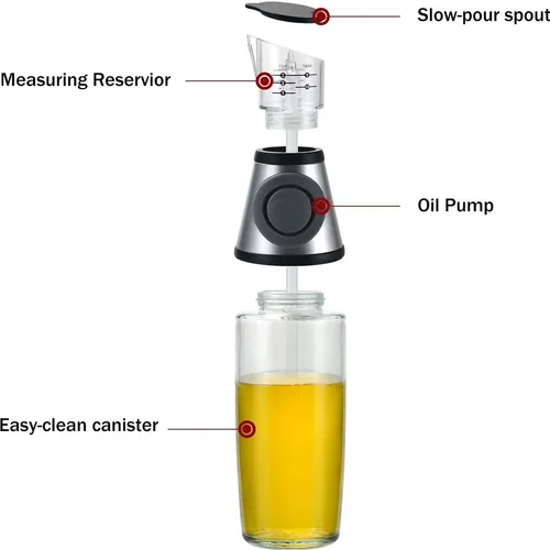 Oil and Vinegar Dispenser Bottle Control Pump 500ml Glass Spice With Measuring Pour Easy Refill Cleaning Bulk Sale