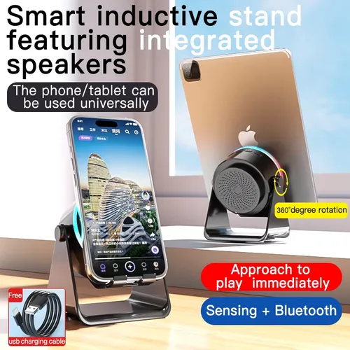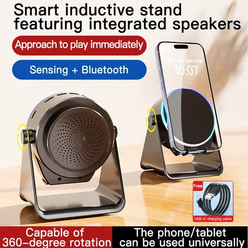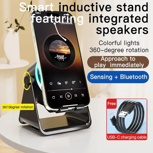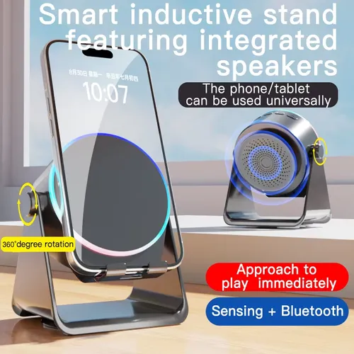 Smart Induction BT Speaker with RGB LED Lighting Portable Wireless Mobile Phone Holder and Music Player Induction Stand